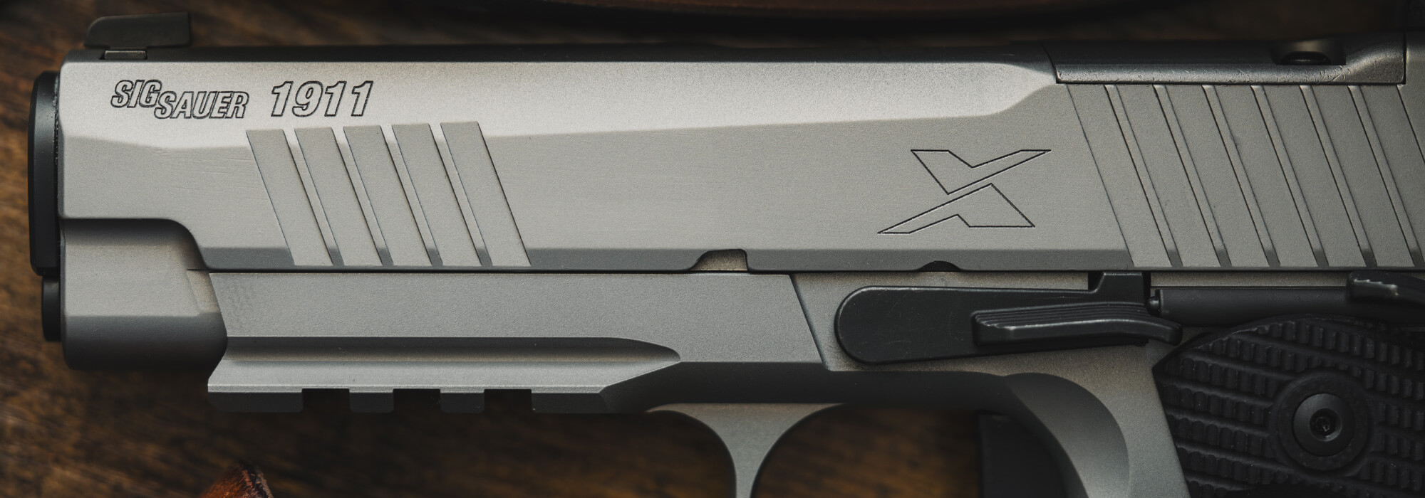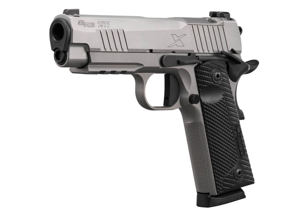 The classic stainless steel 1911 has joined the Red Dot Revolution. Modern upgrades include a Stainless glass bead-blasted XSERIES Slide which comes optic-ready for ultra-low-profile direct-mount red dot optics, a stainless sight plate, and P-Series XRAY3 Day/Night sights for enhanced sight picture visibility. Additional features include a flat trigger, custom G10 grip panels from LOK Grips, a railed stainless- steel frame and ambidextrous thumb safety. A DLC finished carbon-steel barrel, detachable magazine well, (2) 8rd. steel magazines, unrivaled custom aesthetics, and a serrated front strap bring upgraded features to a timeless platform. Old-school lines with new-school performance.