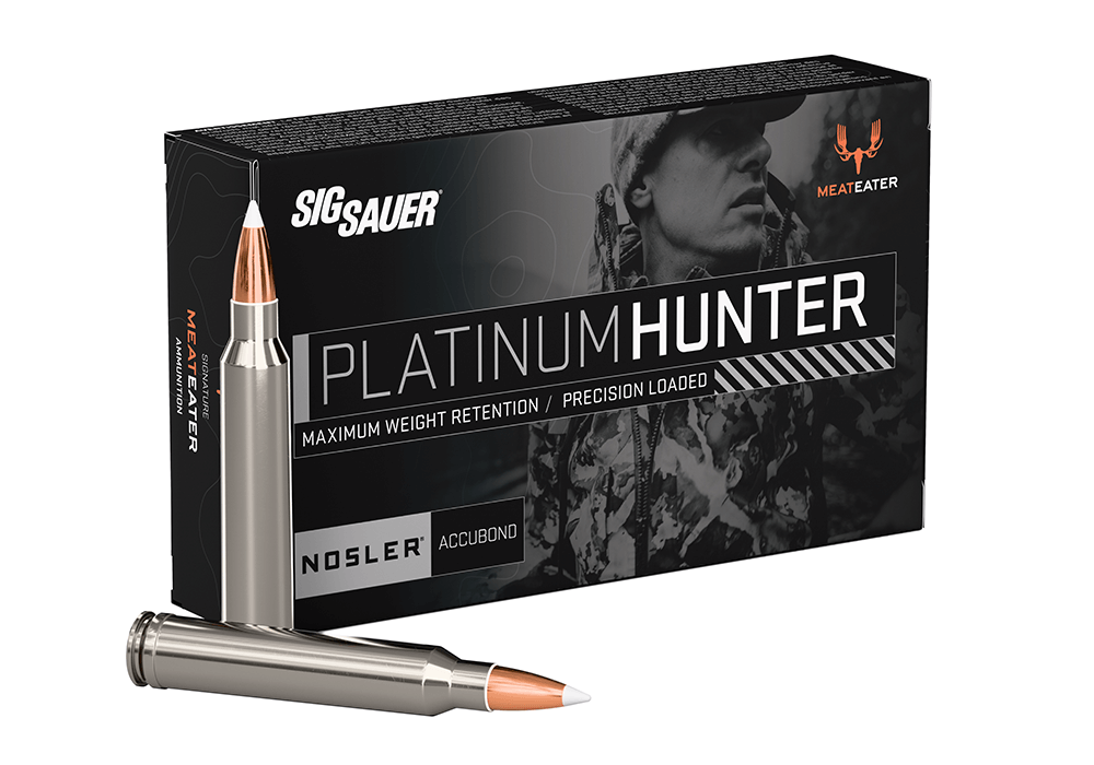 The new Platinum Hunter line of ammunition was created in partnership with the hunting experts at Meateater. This premium offering is precision-loaded with a Nosler Accubond projectile, delivering unmatched weight retention and deep penetration on big game. Each round is enclosed in a corrosion-resistant nickel case for smooth cycling, ensuring reliability in all conditions. And with waterproofing for extreme weather resistance, nothing will stop you from making the perfect shot.