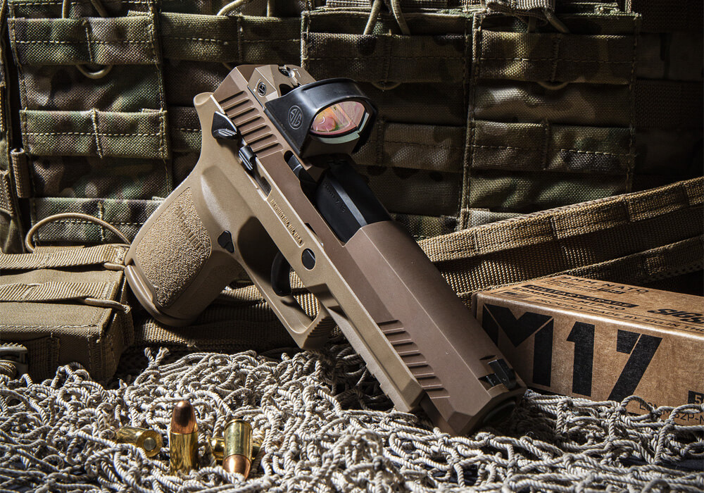 The high-performance M17 ammunition is specifically engineered for exceptional performance in any 9mm +P rated pistol, including the SIG P320 M17.