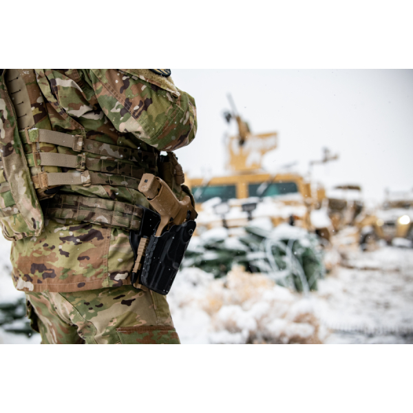 There are several methods to carry a handgun for self-defense. One popular way is “outside the waistband” carry. With this method, the handgun is transported in a holster that is attached to a waistband of a garment or belt on the outside of the garment. OWB carry can be a method for both concealed carry—when the firearm is worn outside the waistband but is concealed by another “cover garment” like a jacket or sweater—and for open carry where no garment conceals the holstered handgun.