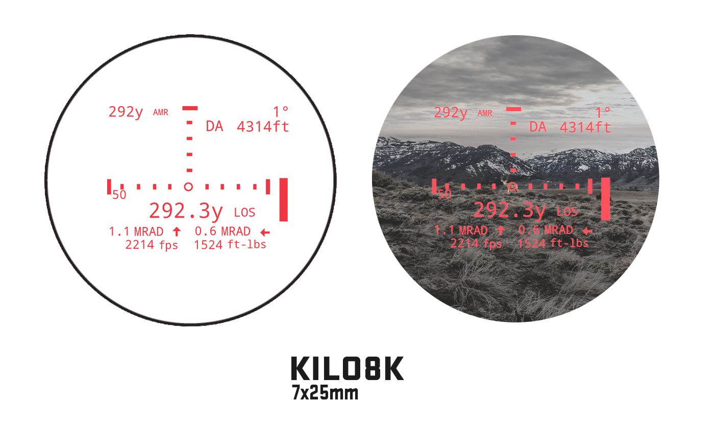 Introducing the new KILO8K-ABS 7 x 25 mm laser rangefinding monocular with BDX 2.0. The KILO8K-ABS has a maximum reflective range of 8,000 yards and includes Applied Ballistics Elite (BDX Elite) along with onboard environmental sensors and digital compass; the KILO8K also supports BDX External (BDX-X) for connecting to external devices such as Kestrel and Garmin devices. The Gen II LightWave DSP engine features new target modes: Extended Range (XR) and Fog mode along with First, Best and Last target. The rangefinder incorporates the first Active Matrix Organic Light Emitting Graphic Display which provides all relevant ballistic information such as range to target, elevation holdover, wind hold, energy on target and velocity at target distance. The all new KILO rangefinders also integrate with BaseMap to provide remote waypoints on ranged targets and can be fully configured with the Sig Sauer BDX App. All KILOs leverage Low Energy / Long Range Bluetooth 5.x for multipoint Bluetooth connections and improved connectivity to BDX enabled riflescopes and sights. The KILO8K ships with a Multicam MOLLE bag, Multicam carry pouch, lanyard, tripod adapter and WeatherFlow Bluetooth WindMETER.