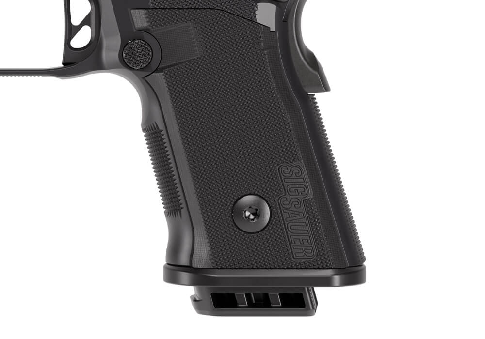 Aggressive, duty-style serrations ensure confident manipulation in all conditions, while fully ambidextrous controls support intuitive operation for both right- and left-handed shooters. A steel frame with a carry-length Picatinny accessory rail and three-slot accessory rail provides durability and versatility, while the precision-engineered alloy grip module with G10 grip panels delivers a secure, consistent grip.