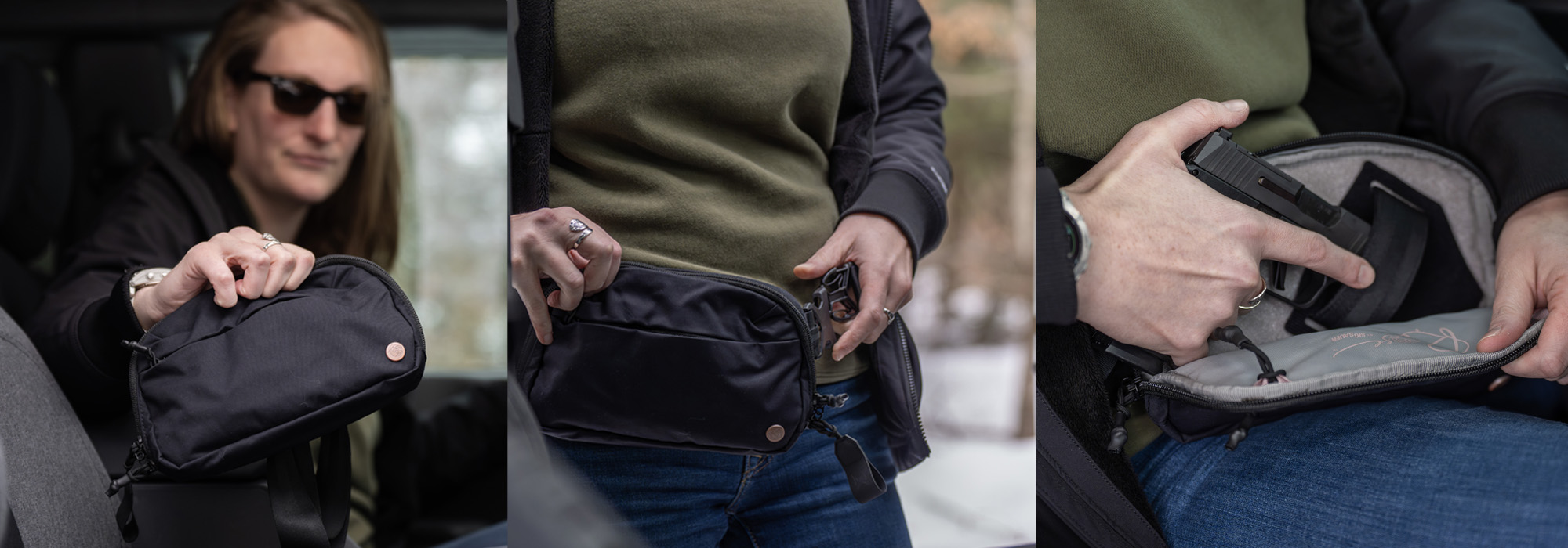 The ROSE Everyday Fanny Pack is the latest addition to your everyday carry (EDC). This new design continues the sleek, discrete appearance to conceal your firearm and everyday essentials with some new features from the latest model. The 2.1 features a new micro rapid access tab, 2-way zippers on the front pocket, stronger material used for the adjustable belt strap, a more finished interior, and an included Holster-retention accessory. Made of premium materials, this fanny pack offers great water resistance and durability. The Everyday Fanny Pack has one main compartment with fabric (Velcro®-style) to attach a hook and loop holster at your desired angle to keep your firearm secured. Additionally, the front zippered compartment has a removable key lanyard and mesh pockets to keep other belongings organized, and one rear zippered pocket to store your phone. The main compartment features a 2-way zipper, great for anyone who is left or right-handed dominant. On the back side is the famous ROSE logo that also acts as a grip to keep your sling close and tight when unzipping at a fast speed.